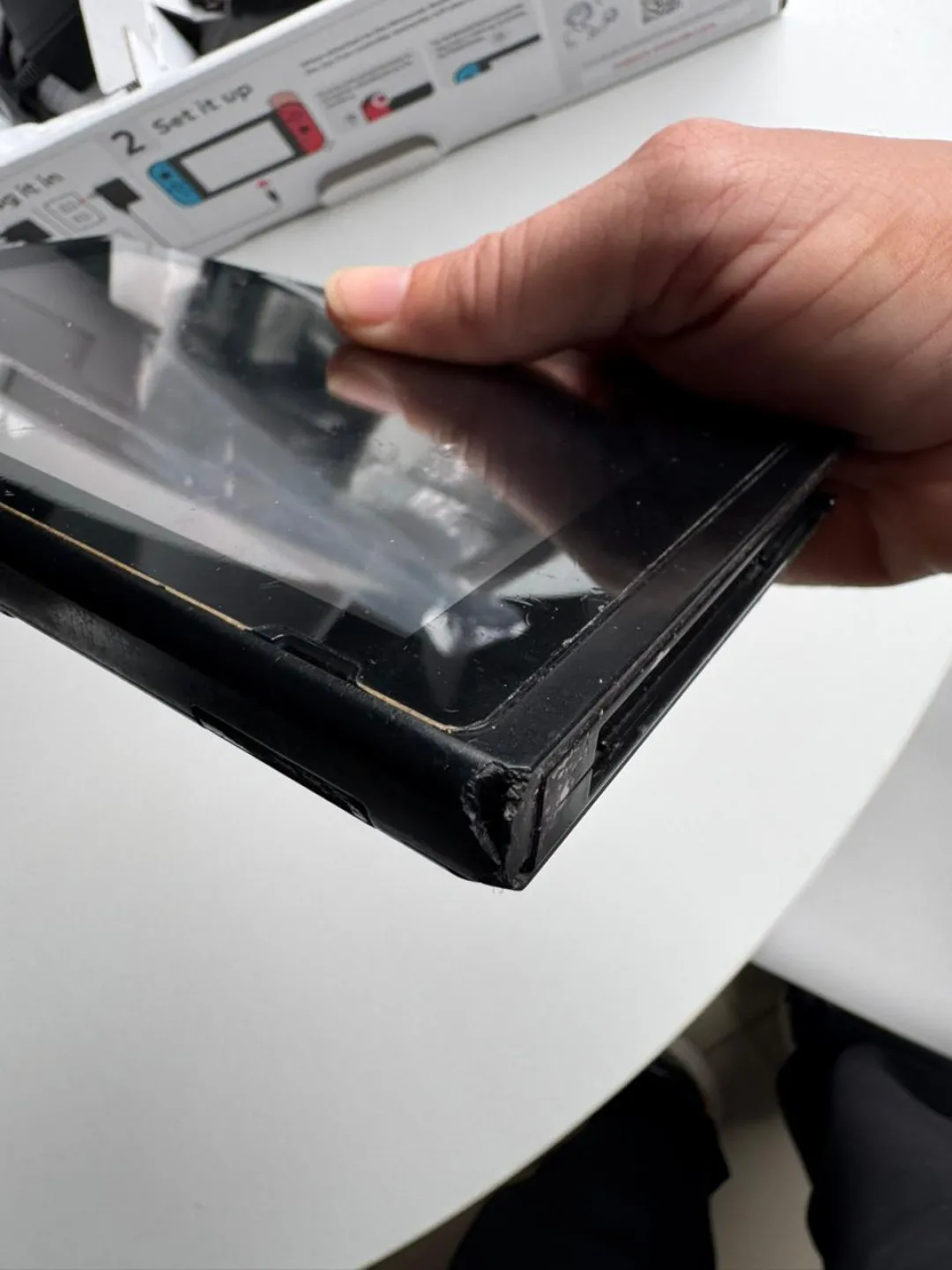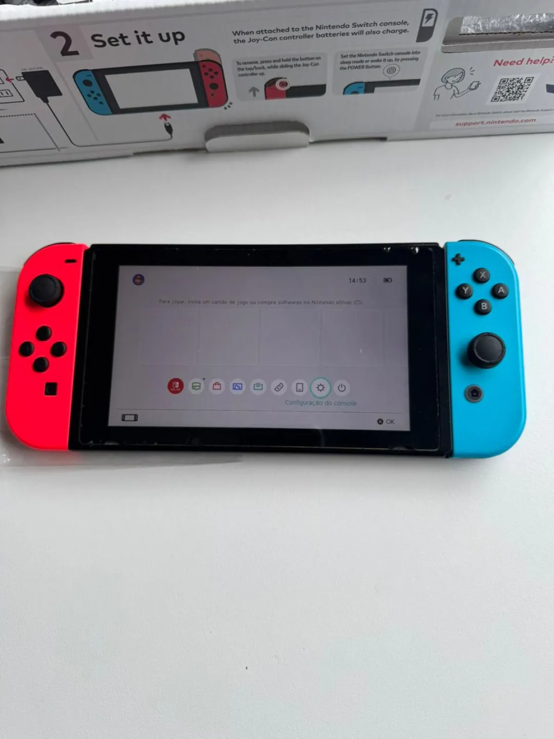 Observação de estado: O aparelho apresenta um detalhe estético mínimo na parte inferior da carcaça (quase imperceptível), que é de natureza estritamente cosmética. Esta marca de uso não compromete a integridade do hardware, a ergonomia e/ou a performance do console.